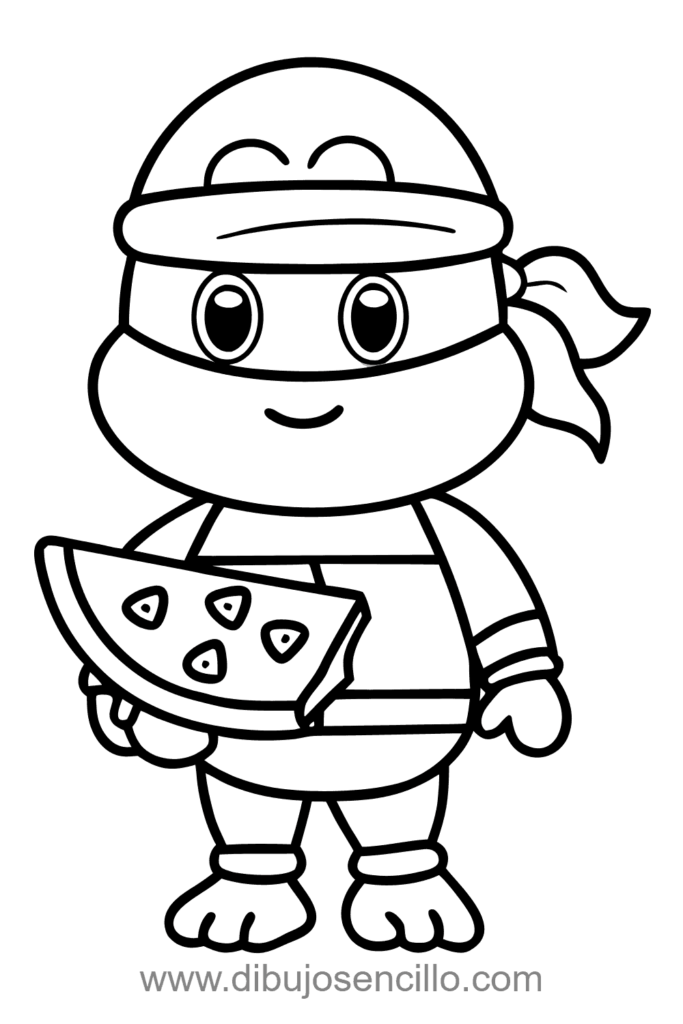 El estilo kawaii con referencia pop hace que esta tortuga ninja sea divertida y reconocible. Es ideal para combinar amor por tortugas con cultura popular y crear homenajes adorables a íconos.