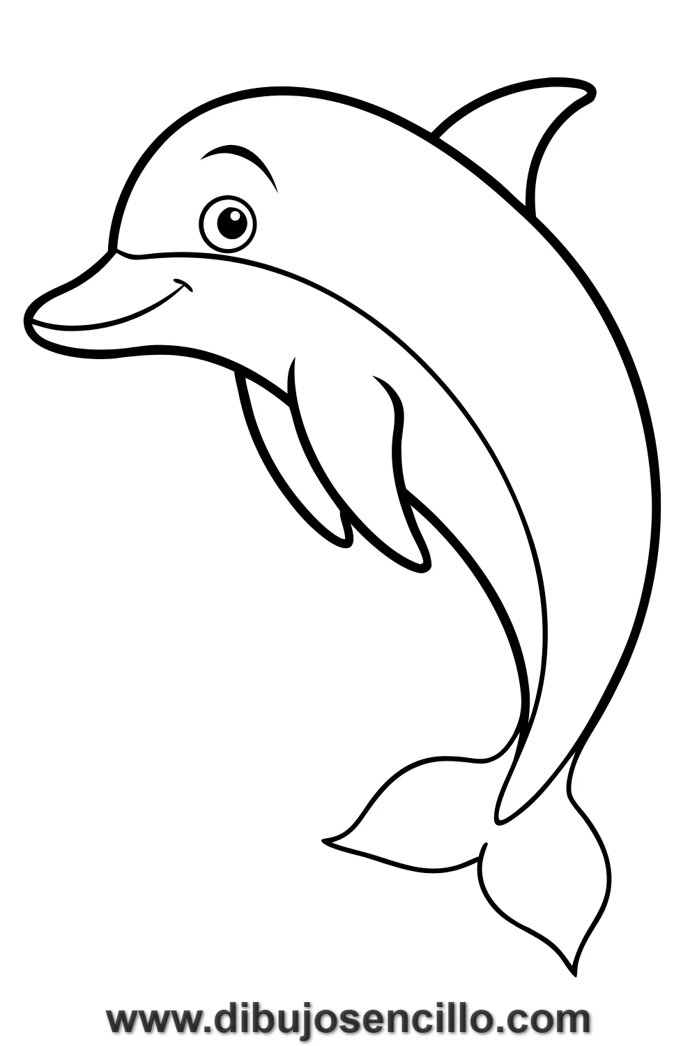 El delfín saltando enseña a representar el movimiento y la curva del cuerpo en el aire usando un arco suave y fluido. Es uno de los dibujos más dinámicos y satisfactorios del mundo marino por la sensación de libertad y velocidad que transmite.