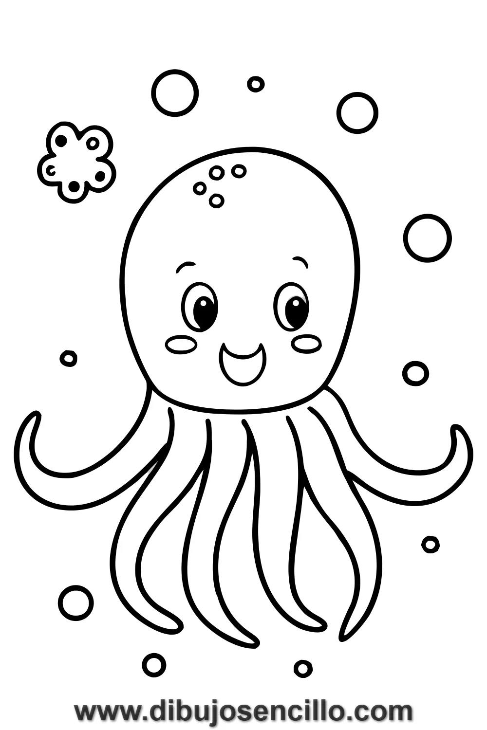 Un pulpo con personalidad desbordante, cabeza enorme y ocho tentáculos curvos que se mueven con vida propia. Su expresión cómica y alegre lo convierte en una de las criaturas marinas más divertidas y fáciles de dibujar.