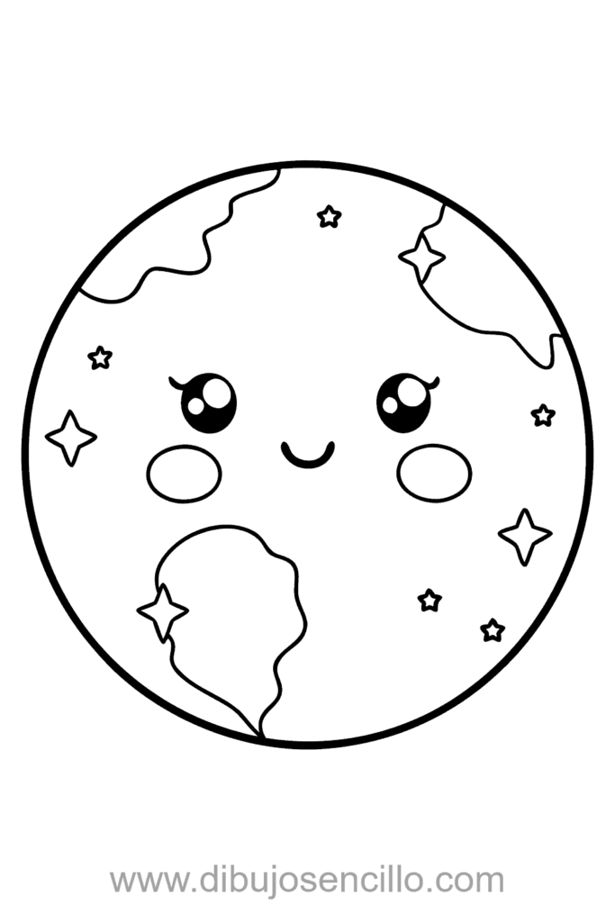El estilo kawaii hace que este planeta sea educativo y simple. Es ideal para practicar círculos perfectos y formas de continentes básicas.