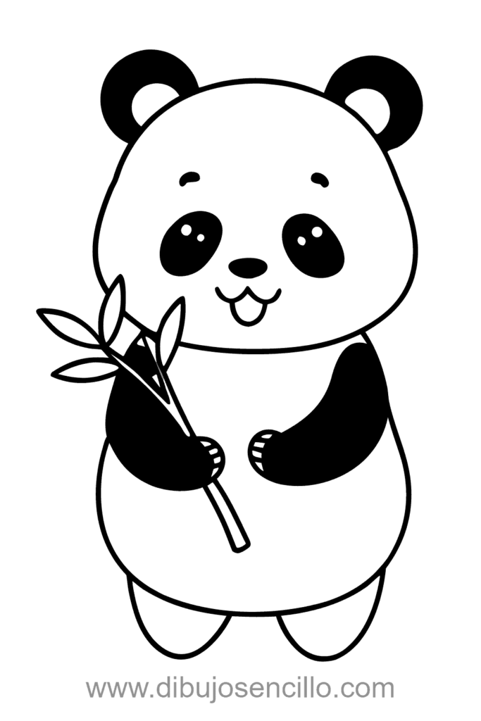 El estilo kawaii hace que este panda sea encantador y simple. Es perfecto para practicar círculos y crear patrones de manchas naturales.