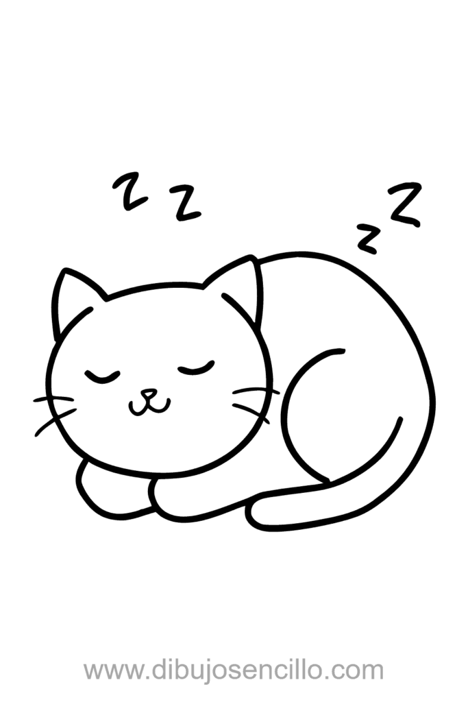 El estilo minimalista hace que este gato durmiendo sea relajante y fácil. Es perfecto para practicar formas curvas y expresiones de sueño tranquilo.