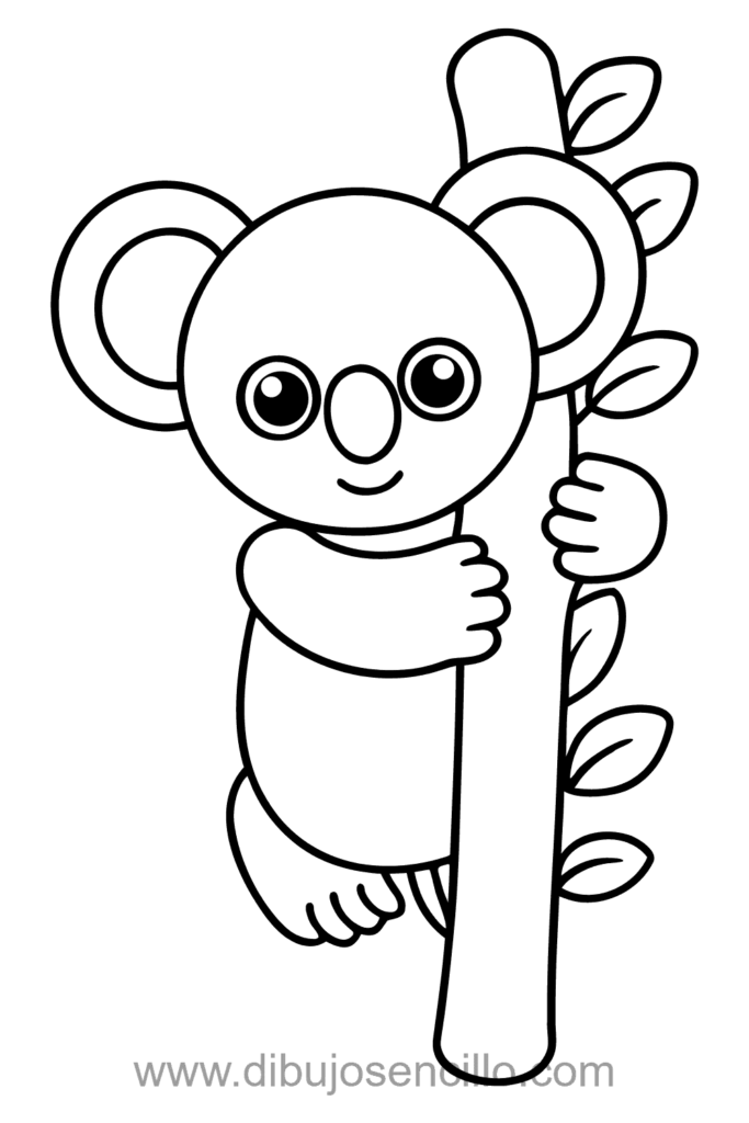 El estilo kawaii hace que este koala bebé sea encantador y fácil. Es perfecto para practicar círculos y mostrar poses de abrazo tiernas.