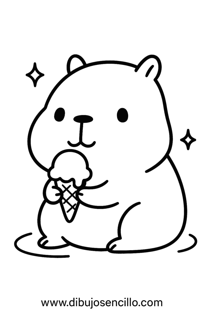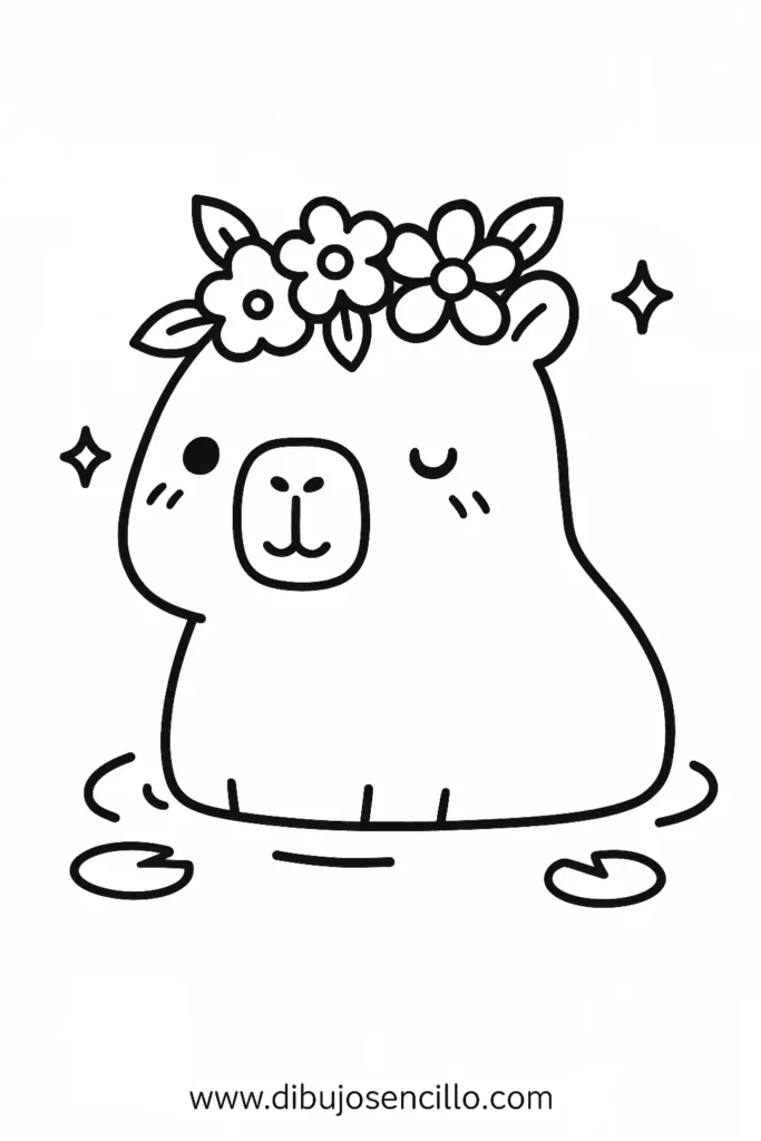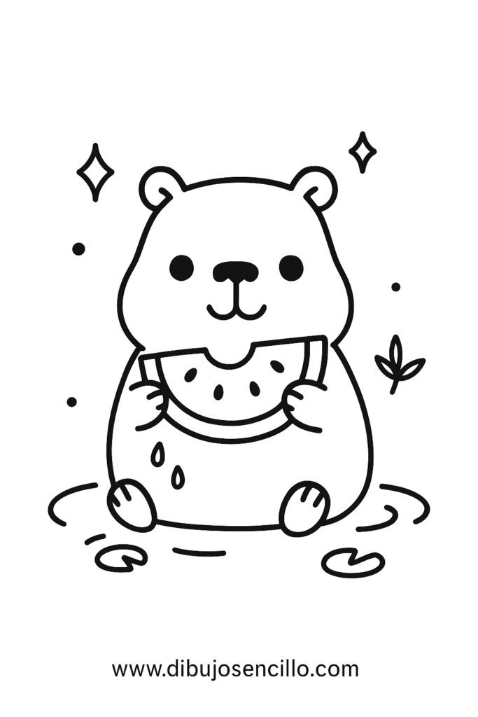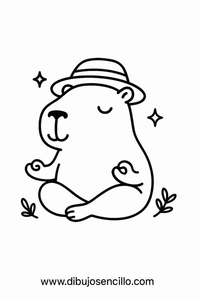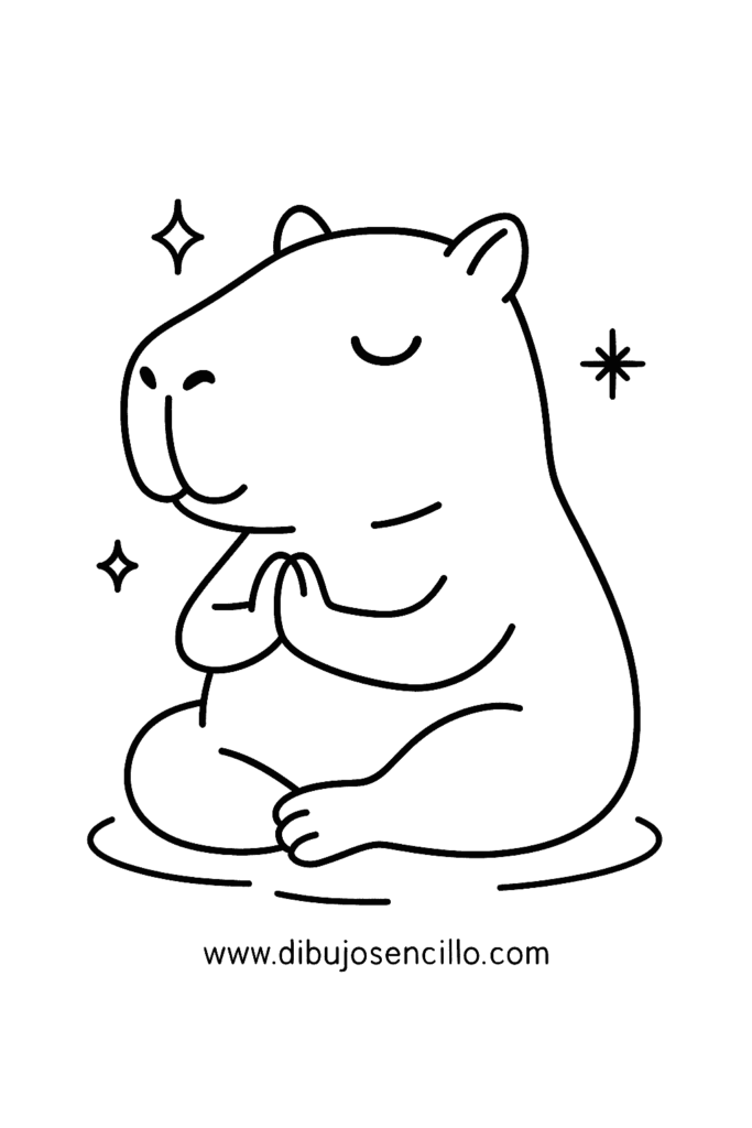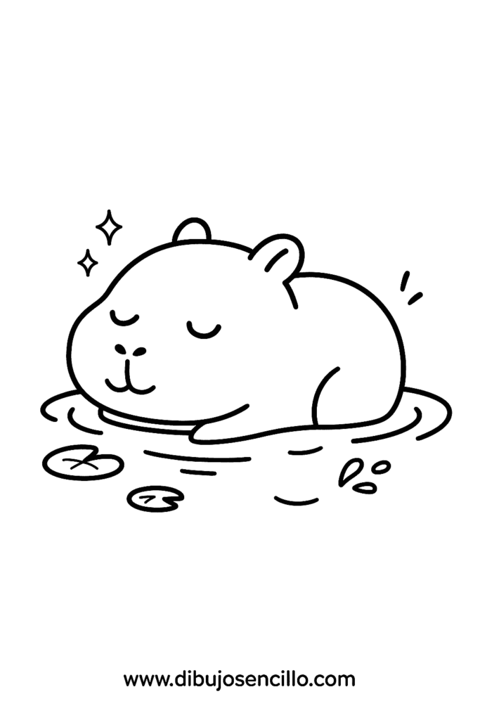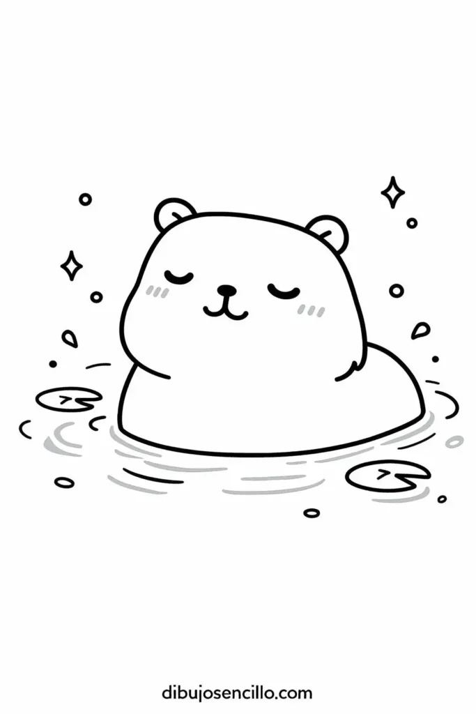 El estilo kawaii con líneas limpias hace que este dibujo sea perfecto para principiantes. La expresión serena del capibara captura su personalidad tranquila y amigable.