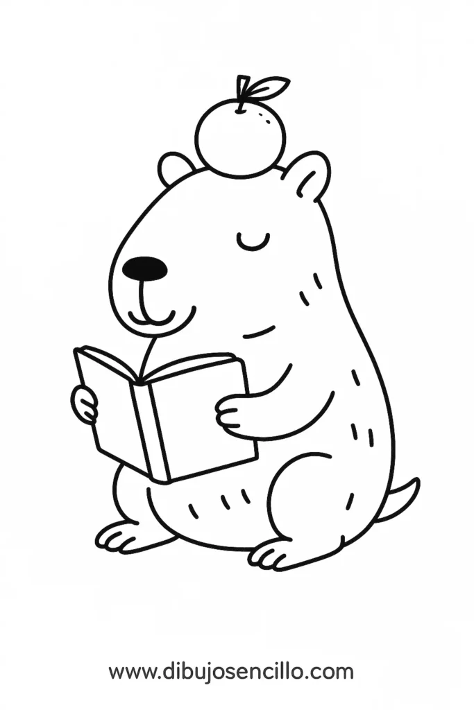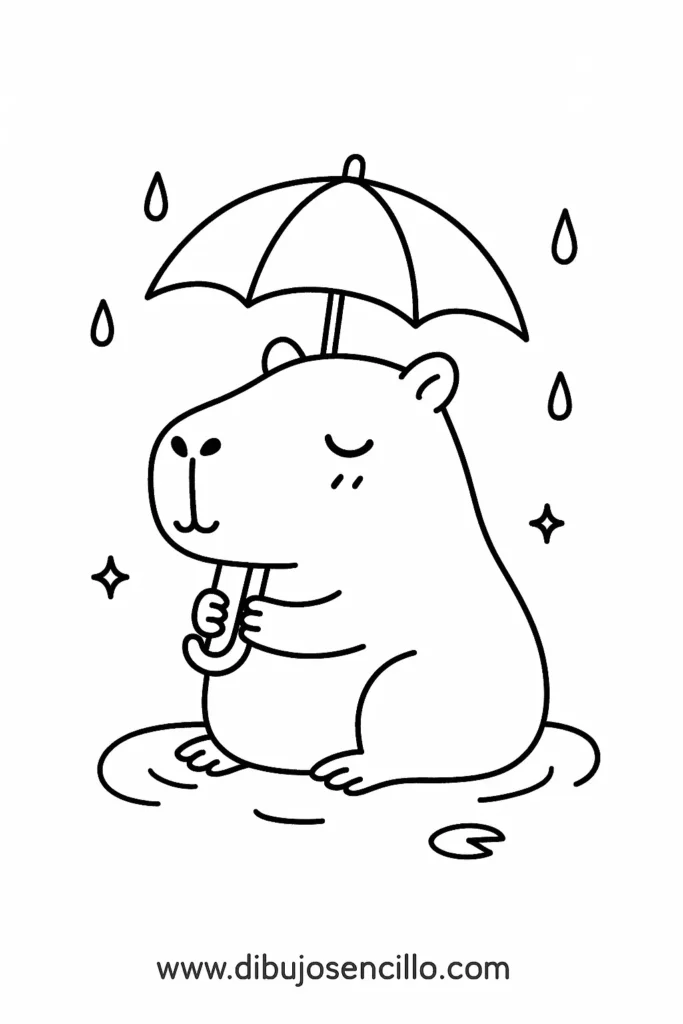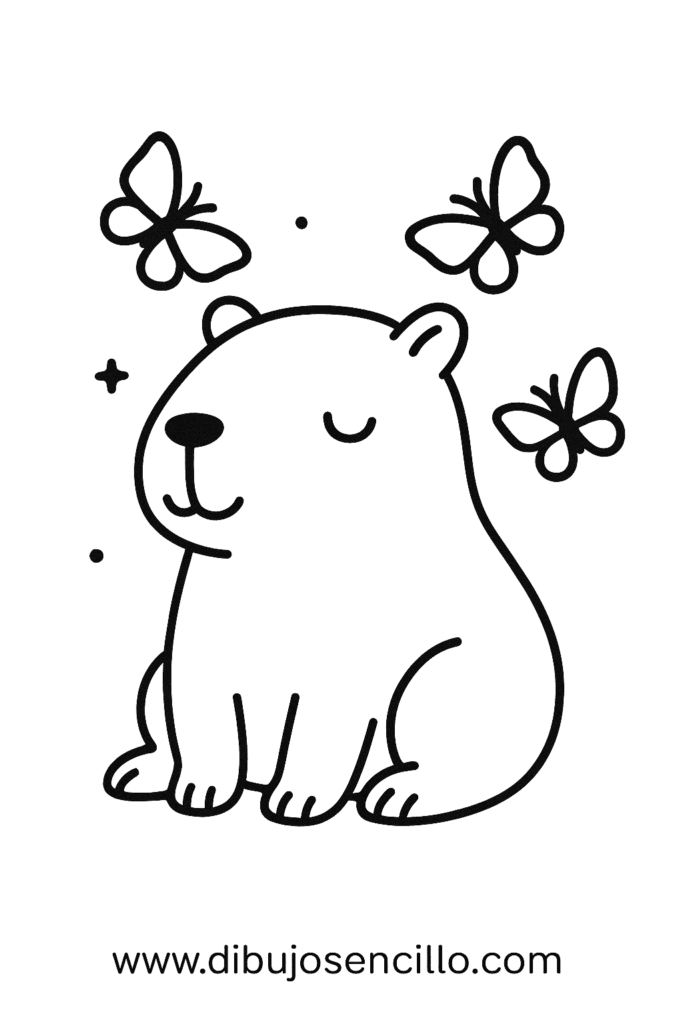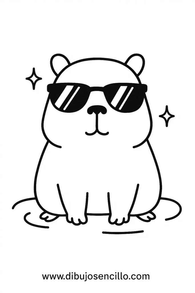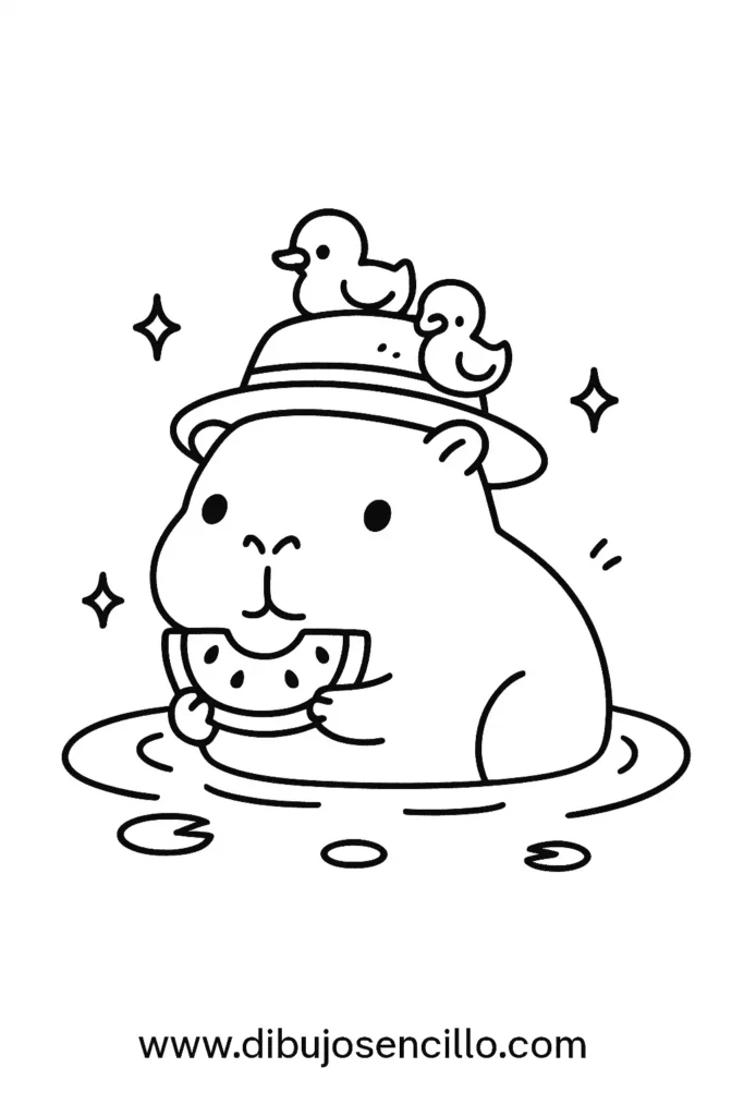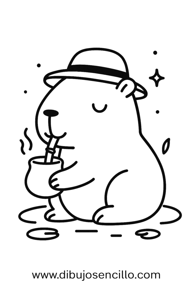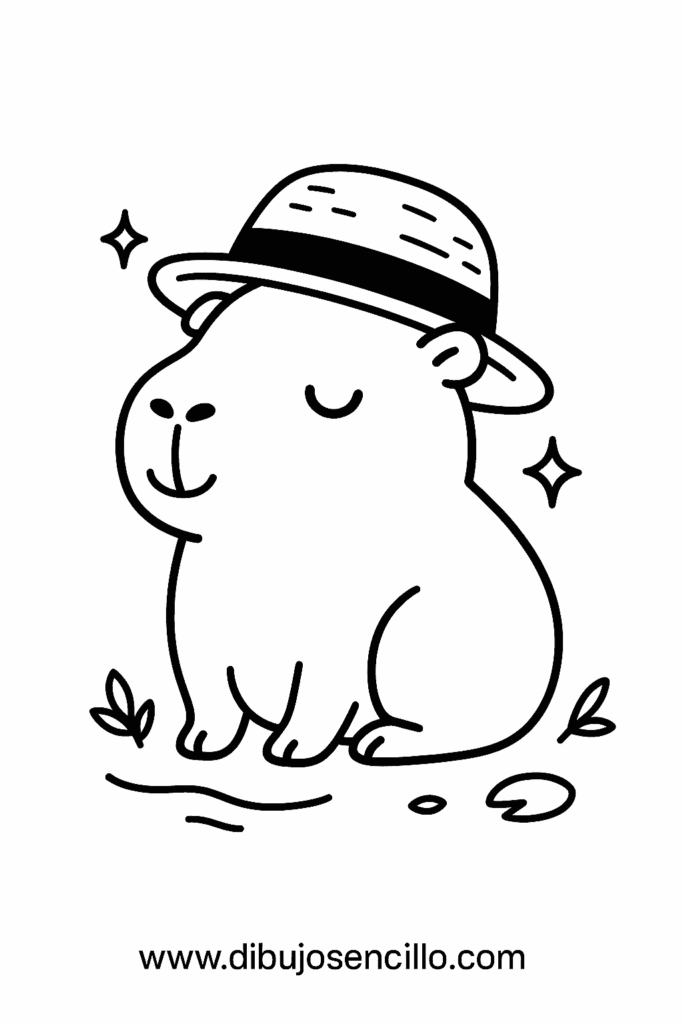 El estilo kawaii con líneas limpias hace que este dibujo sea perfecto para principiantes. La expresión serena del capibara captura su personalidad tranquila y amigable.