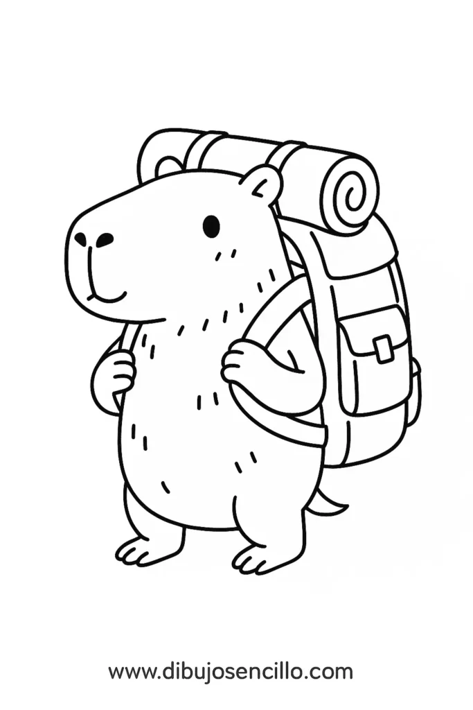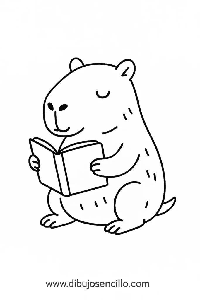 El estilo minimalista con líneas limpias hace que sea muy fácil de dibujar para niños. La expresión pacífica captura perfectamente la dulzura de un capibara bebé descansando.