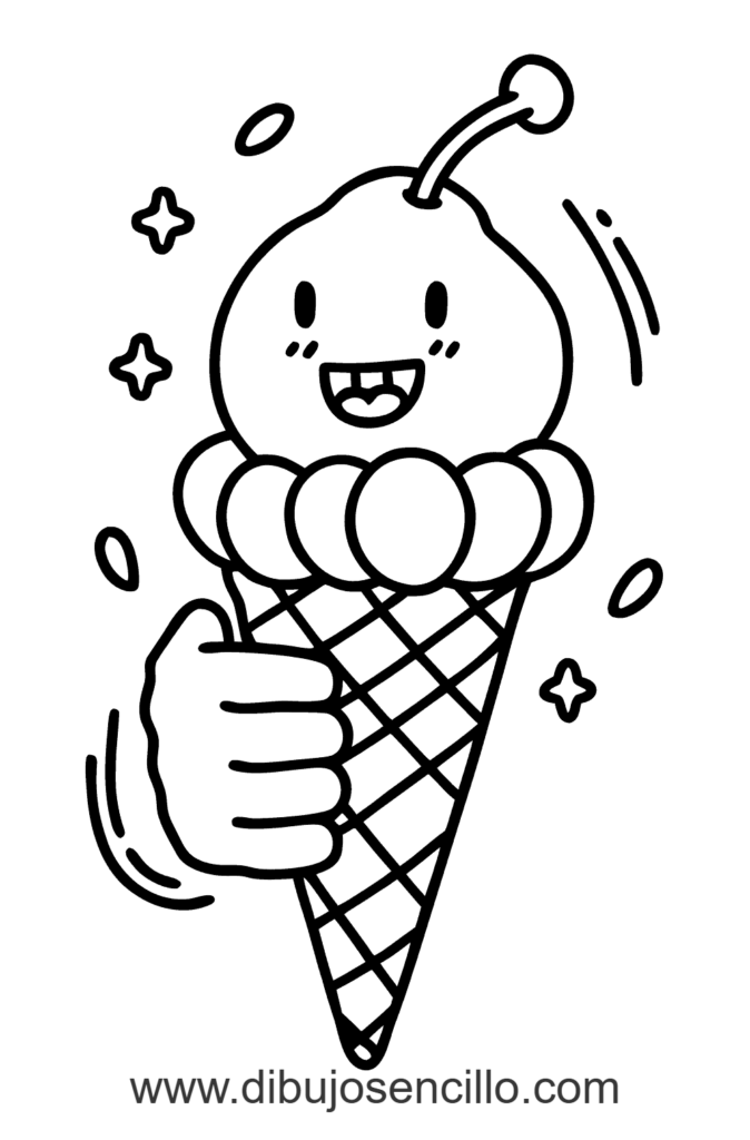 El estilo de caricatura con colores dulces pastel hace que este dibujo sea refrescante. Es ideal para practicar manos sosteniendo objetos cónicos con comida apetitosa.