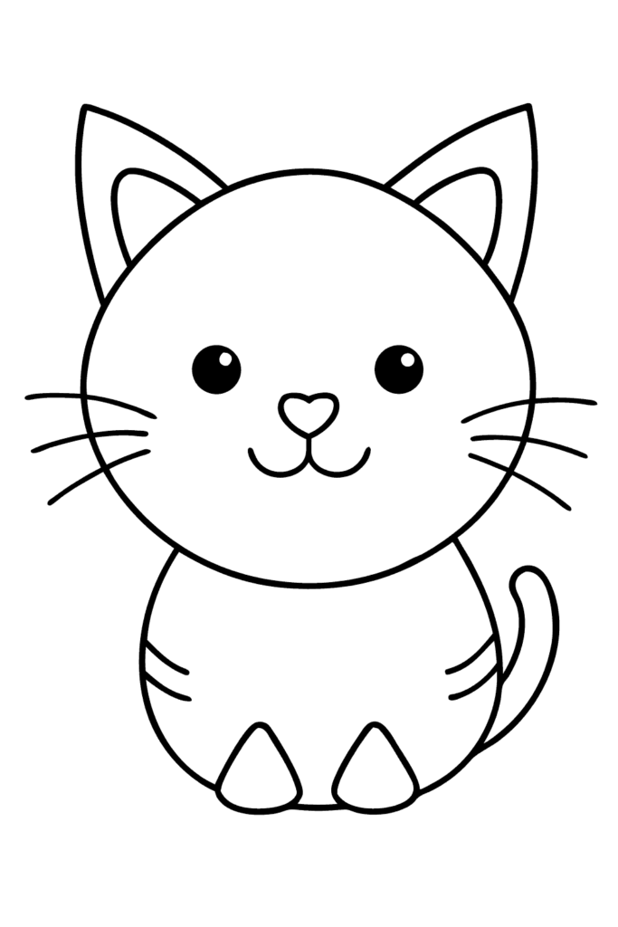 Un gatito adorable con cara redonda y orejas triangulares simples. Los ojos grandes brillantes y sonrisa curva crean expresión tierna perfecta.