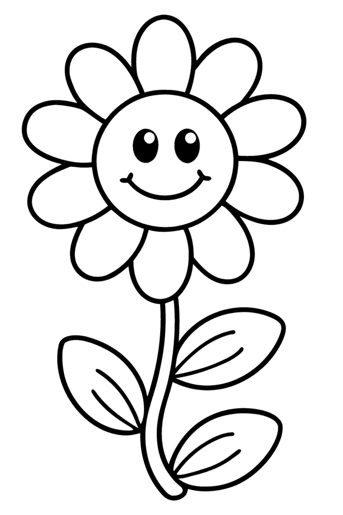 El estilo simple hace que esta flor feliz sea encantadora y fácil. Es perfecta para practicar simetría radial y añadir detalles de jardín.