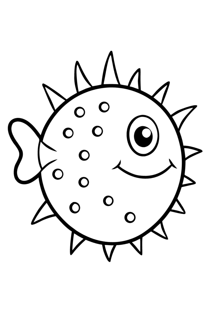 El estilo kawaii hace que este pez globo sea tierno y simple. Es ideal para practicar círculos y añadir líneas radiantes decorativas.
