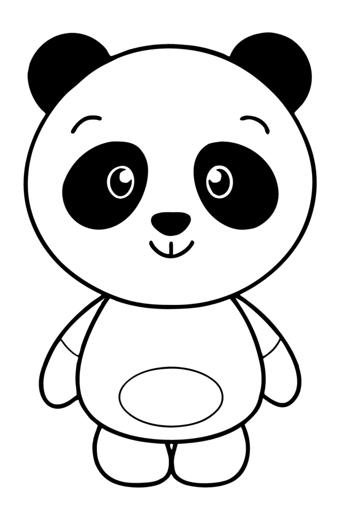 El estilo kawaii hace que este panda bebé sea encantador y simple. Es ideal para practicar círculos y crear patrones de manchas.