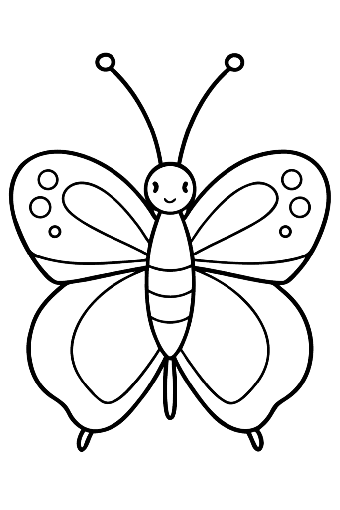 El estilo simple hace que esta mariposa sea perfecta para colorear después. Es ideal para practicar simetría y patrones decorativos básicos.