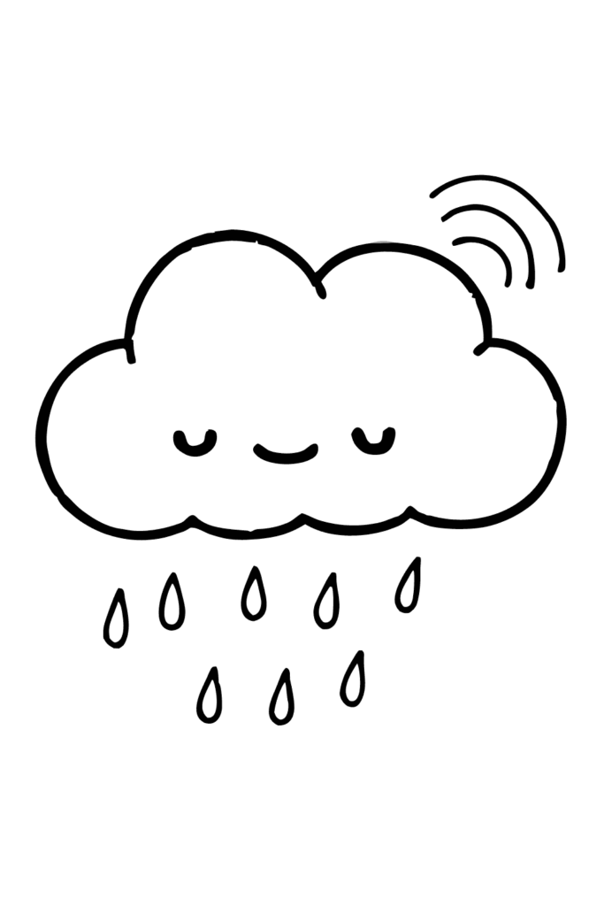 El estilo minimalista hace que esta nube lluviosa sea divertida y fácil. Es perfecta para practicar curvas conectadas y formas de lágrima.