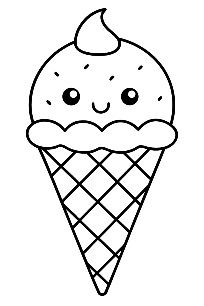 El estilo kawaii hace que este helado sea encantador y simple. Es perfecto para practicar triángulos, círculos y crear patrones de rejilla.