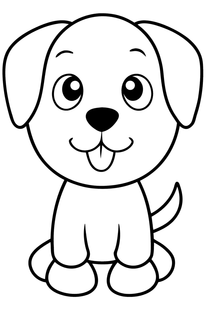 El estilo kawaii hace que este perrito sea tierno y fácil. Es ideal para practicar óvalos conectados y expresiones alegres animales.