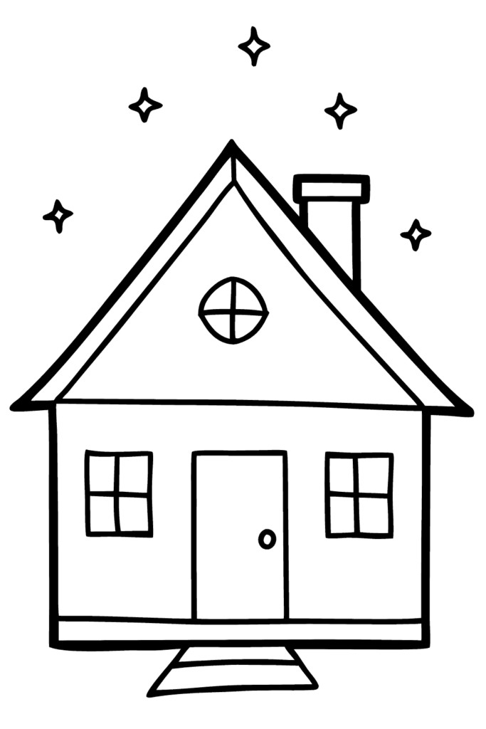 El estilo minimalista hace que esta casa sea perfecta para primeros dibujos. Es ideal para practicar formas geométricas básicas y proporciones simples.