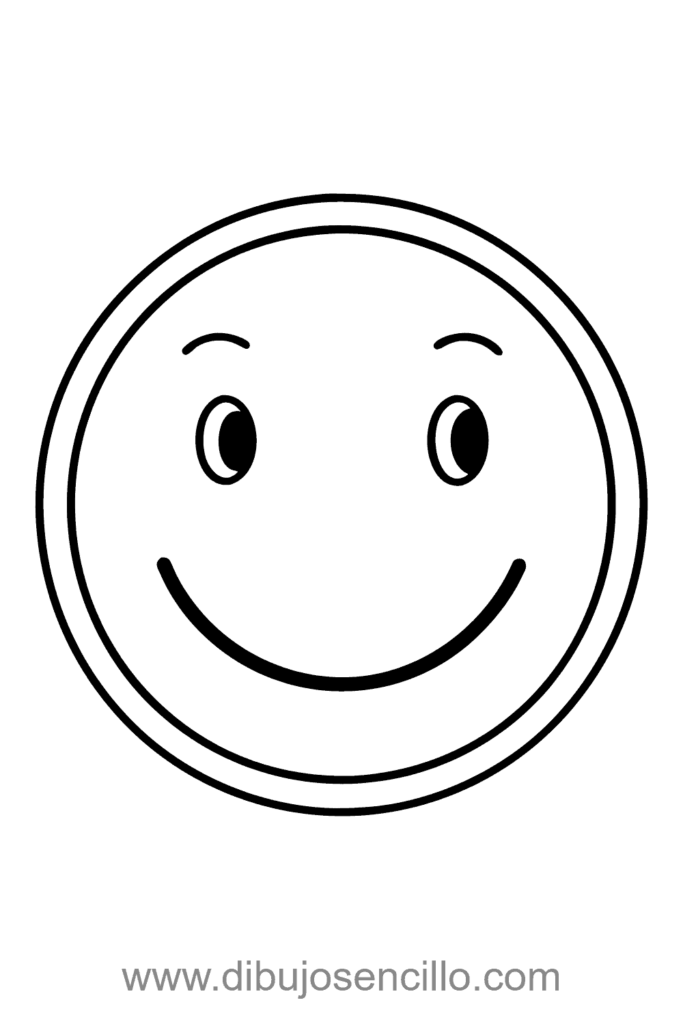 Un círculo perfecto con dos puntos y línea curva creando cara sonriente. La simplicidad máxima de esta expresión feliz lo hace ideal para comenzar.