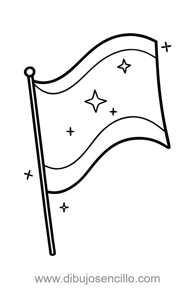 El estilo simple hace que esta bandera sea dinámica y fácil. Es perfecto para practicar rectángulos ondulados y movimiento visual básico.