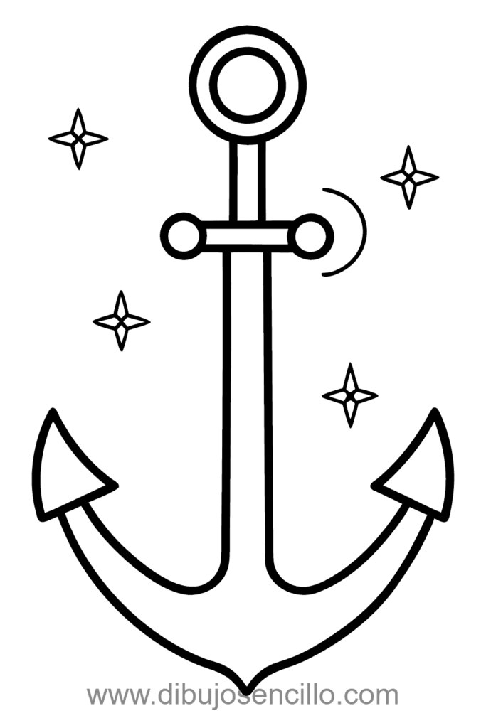 El estilo geométrico hace que esta ancla sea náutica y simple. Es ideal para practicar cruces simétricas y curvas paralelas juntas.