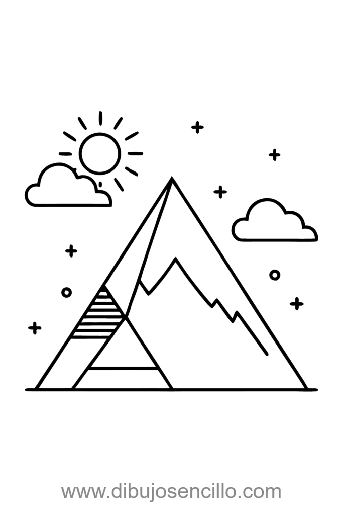 El estilo geométrico hace que esta montaña sea perfecta para principiantes. Es ideal para practicar triángulos perfectos y crear composiciones de paisajes.