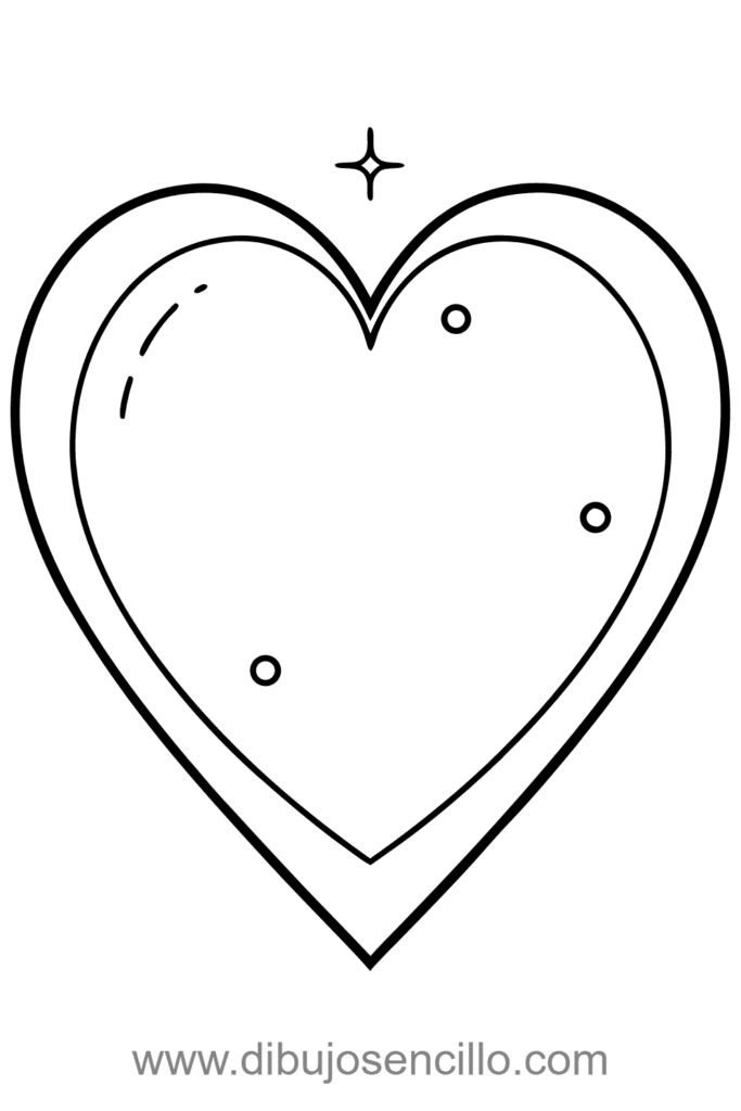 El estilo simple hace que este corazón sea emblemático y fácil. Es perfecto para practicar simetría y curvas conectadas suavemente.